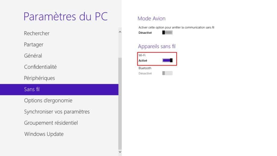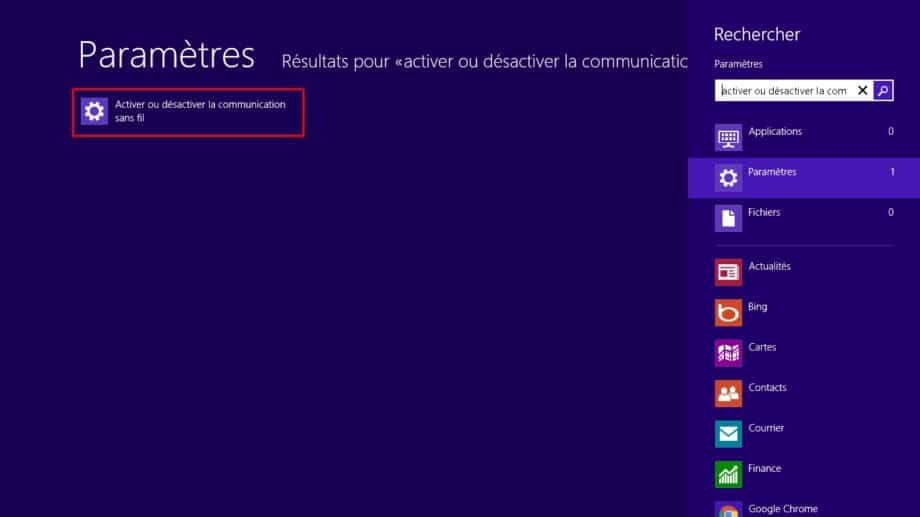 Depuis l’écran d’accueil, cherchez la rubrique « Activer ou désactiver la communication sans fil ».